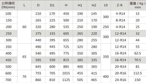 四、主要外形尺寸、連接尺寸和重量